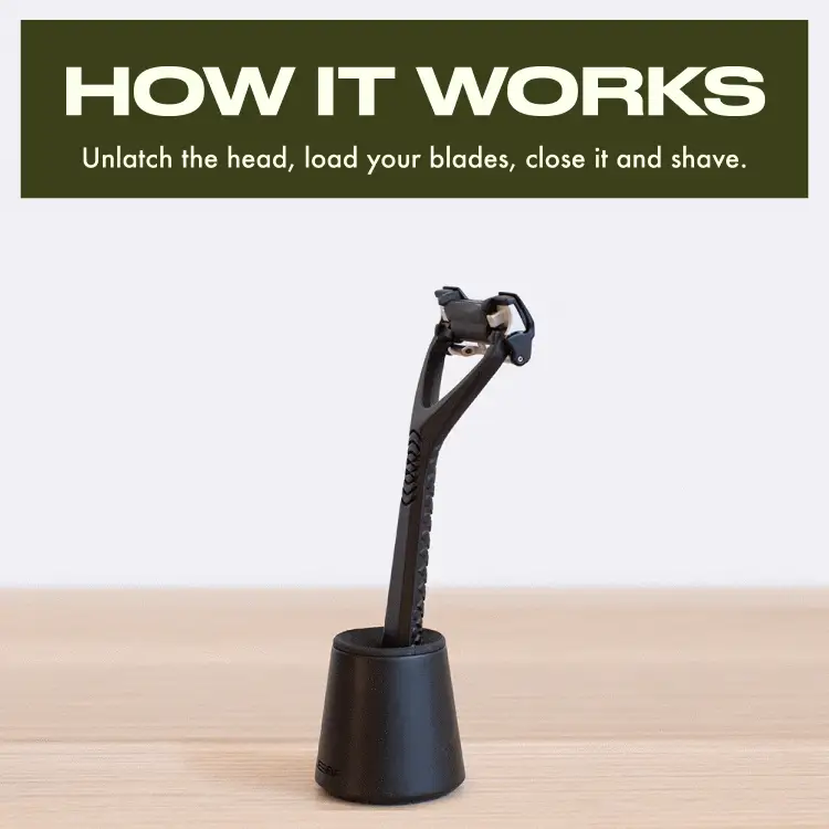 The Leaf Two Razor is a solid metal, pivoting safety razor designed for a closer, more comfortable shave. The two-blade system adapts to your contours with less pressure, while guarded blade positions help reduce irritation across face, body, and head shaving.